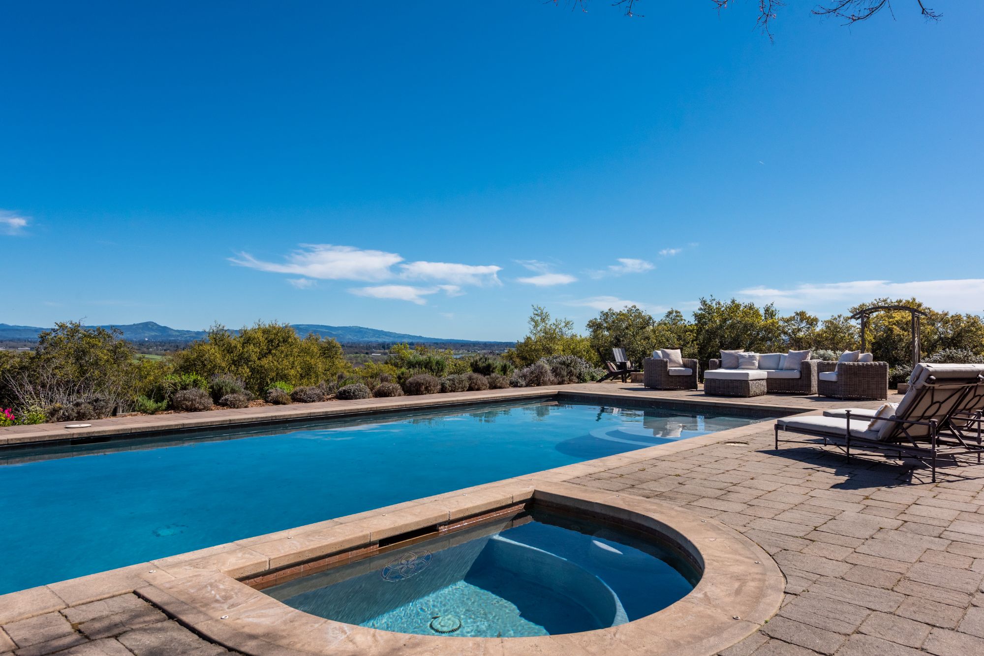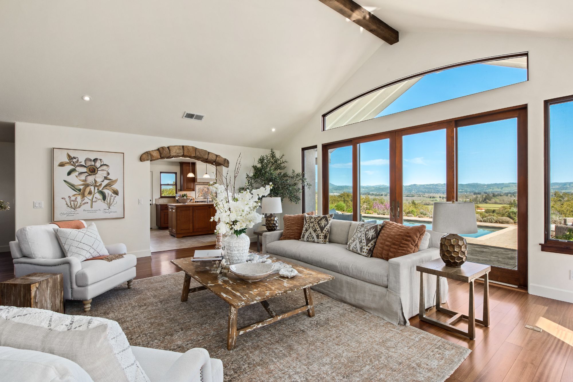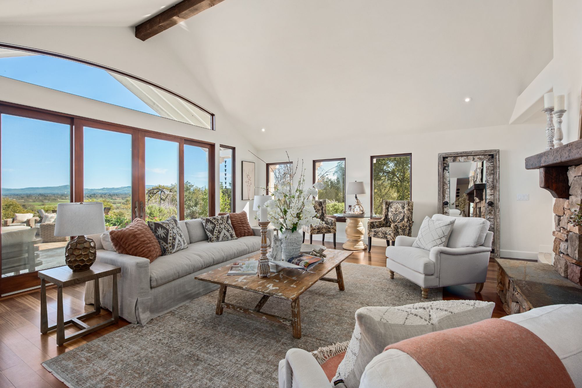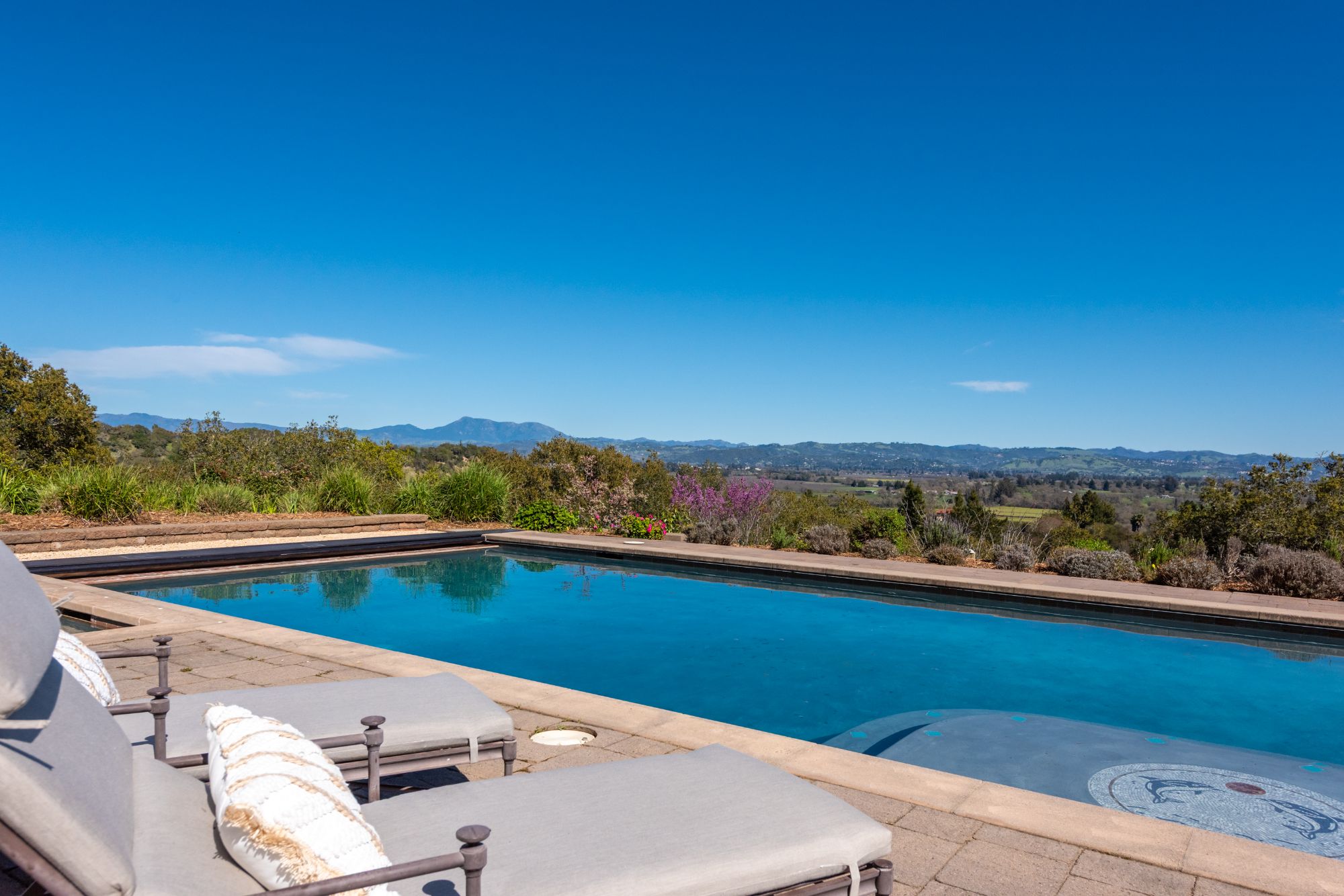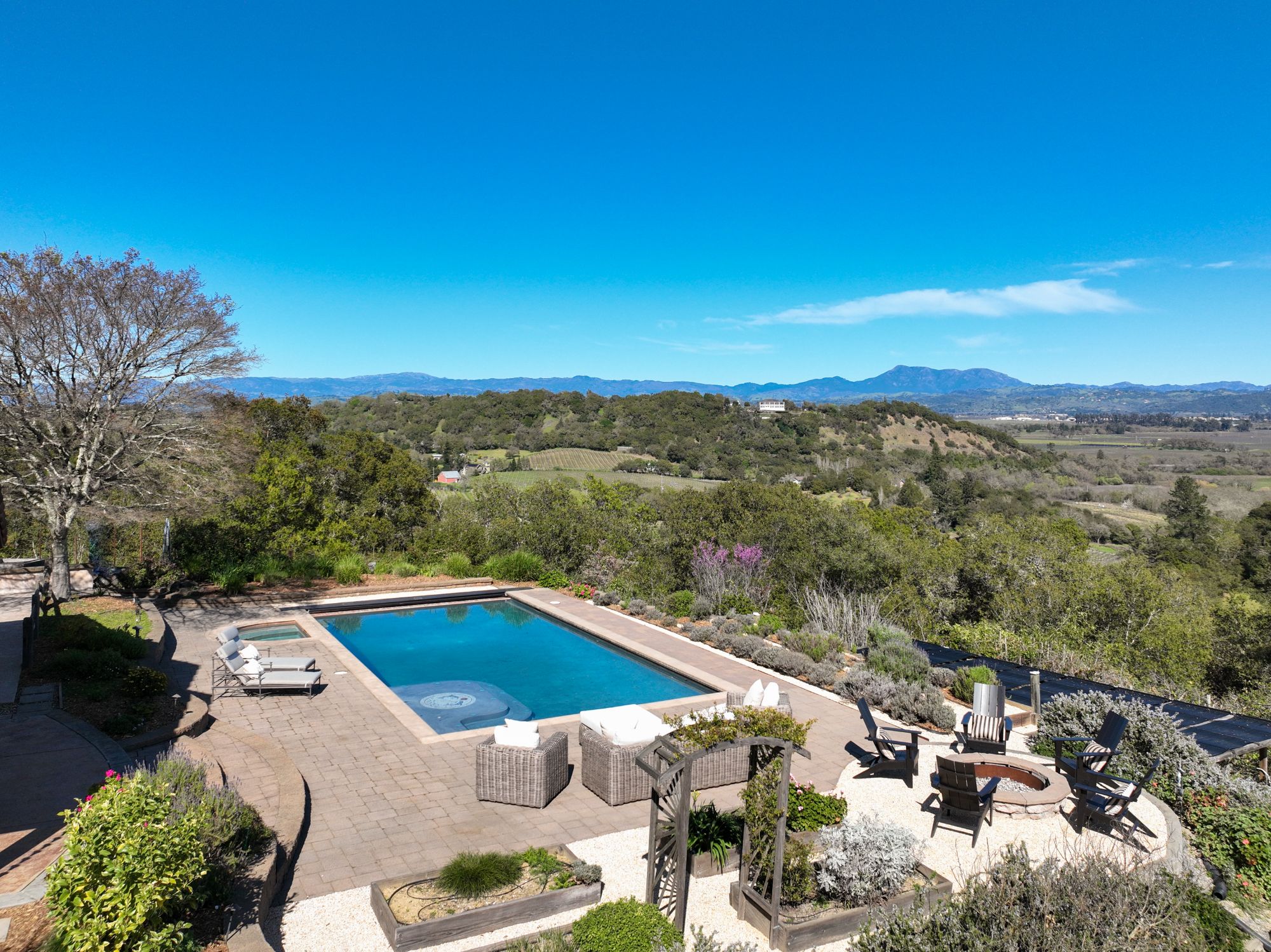 Inspired by the owner’s summer visits to the island of Majorca as a child, this Mediterranean farmhouse styled home is located on one of the most amazing spots in Sonoma County. This home was built just 22 years ago by Oso Construction and is a true masterpiece of home, serenity and sense of place.