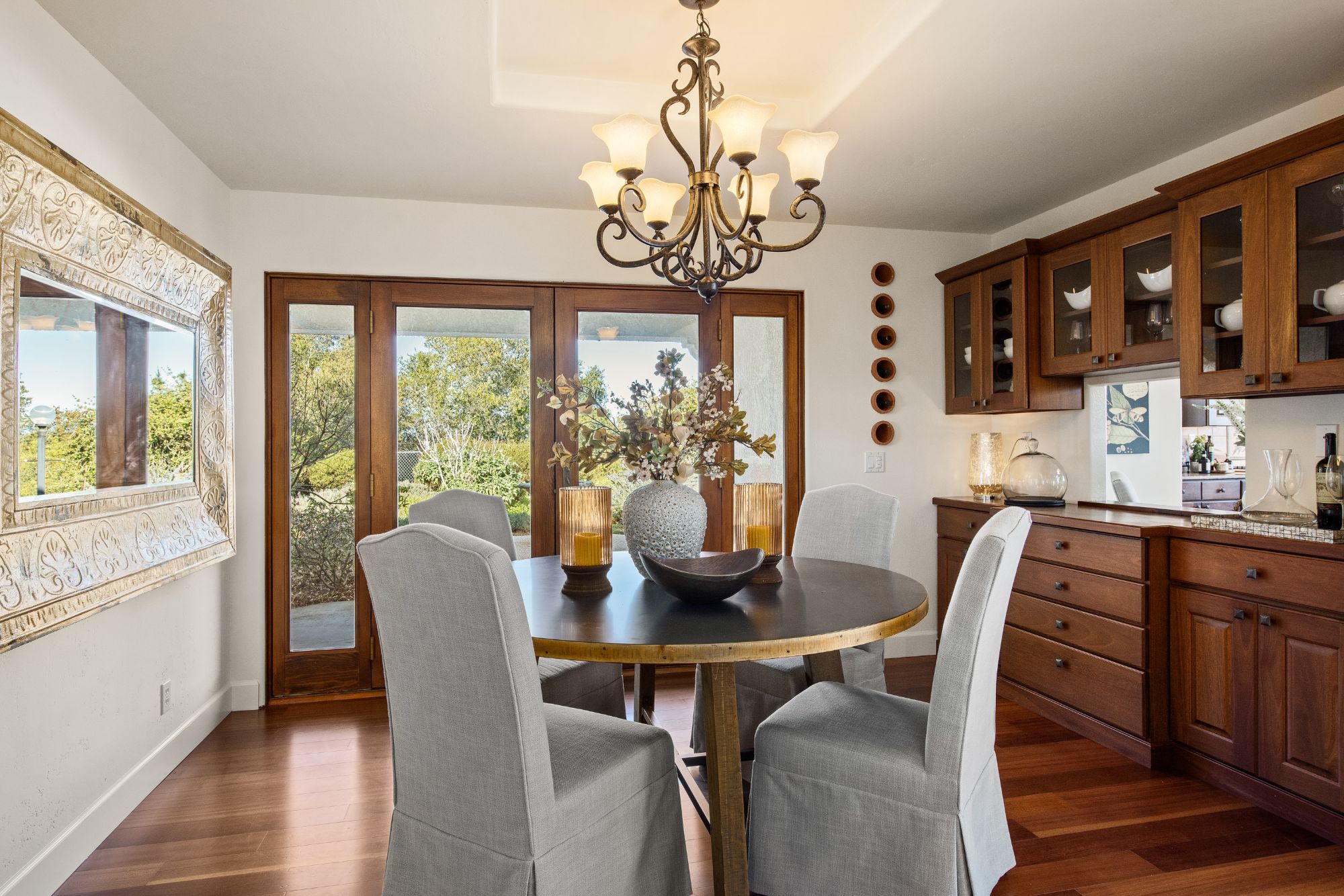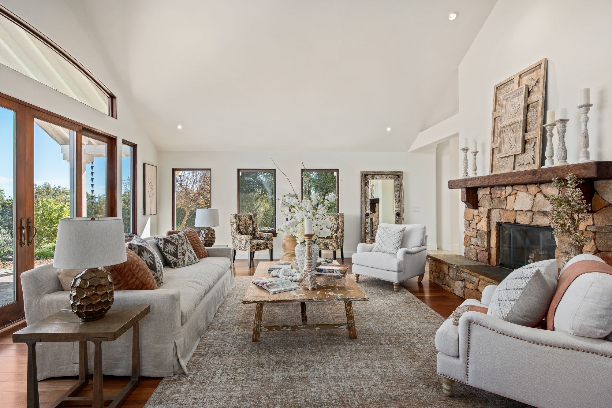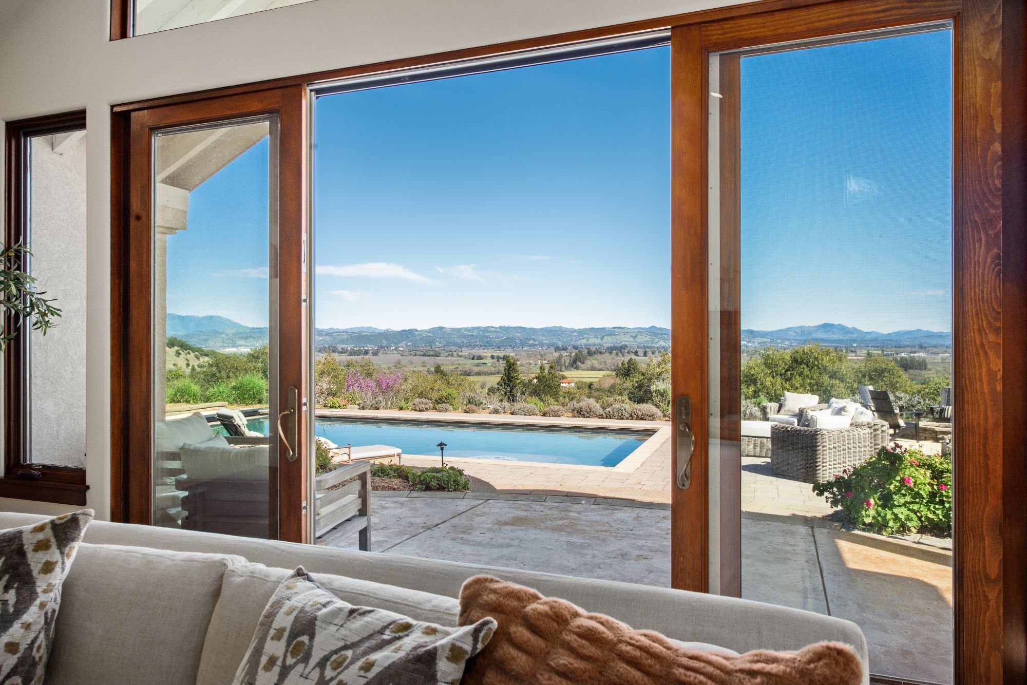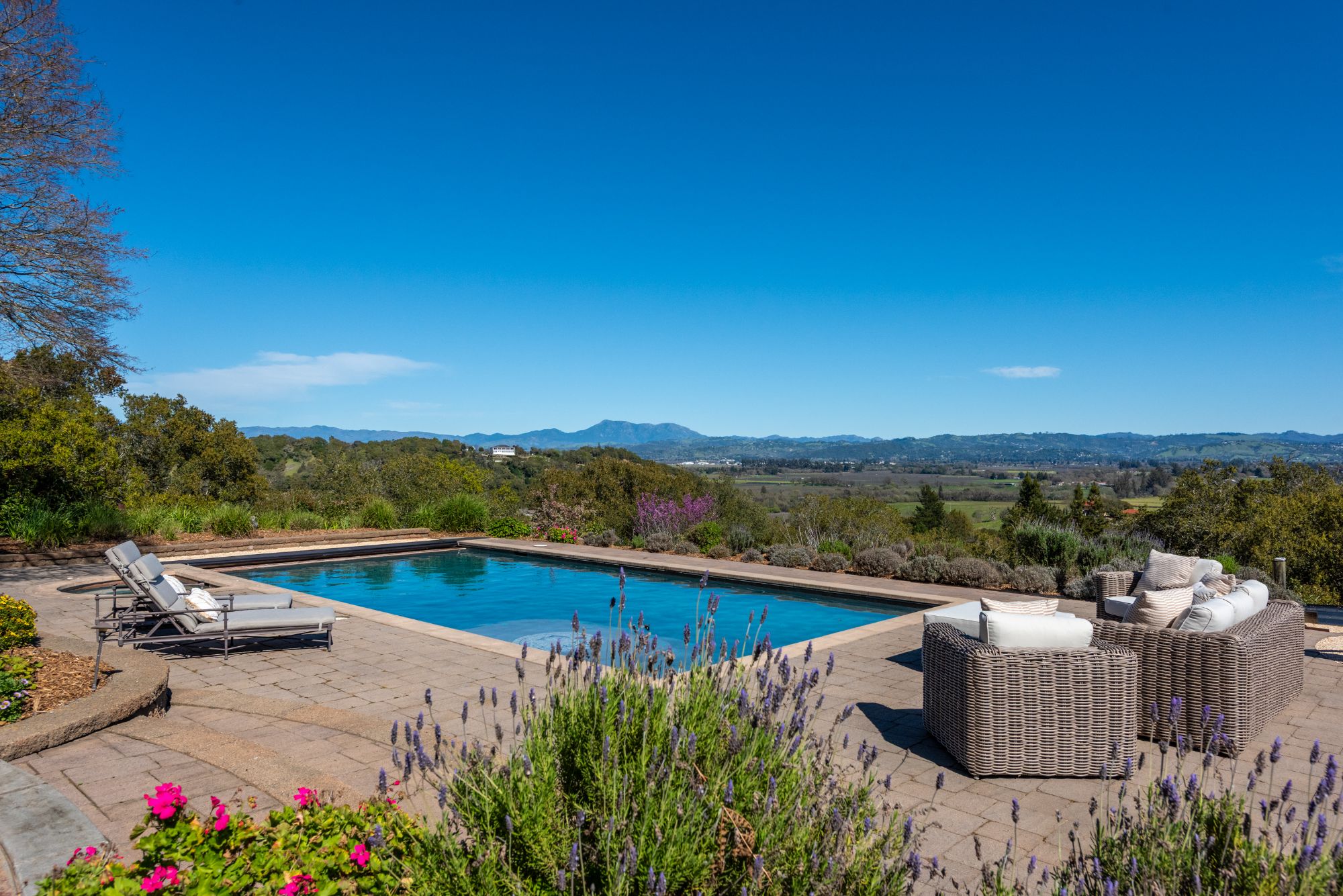 Inspired by the owner’s summer visits to the island of Majorca as a child, this Mediterranean farmhouse styled home is located on one of the most amazing spots in Sonoma County. This home was built just 22 years ago by Oso Construction and is a true masterpiece of home, serenity and sense of place.