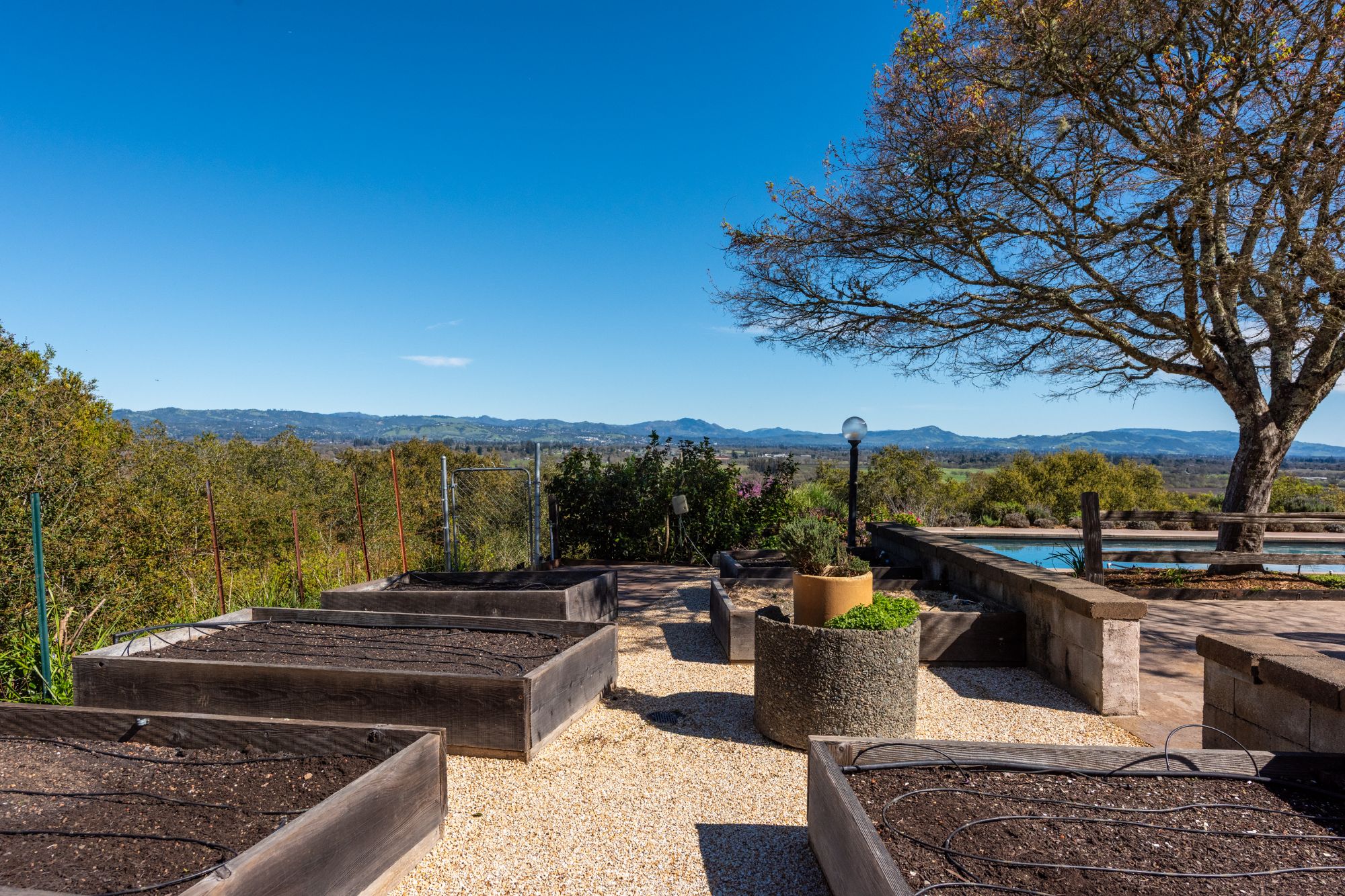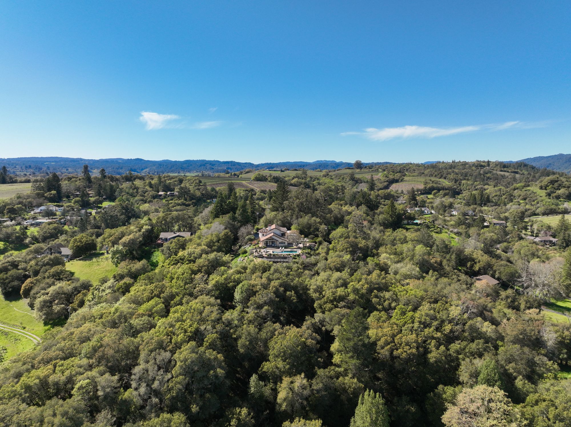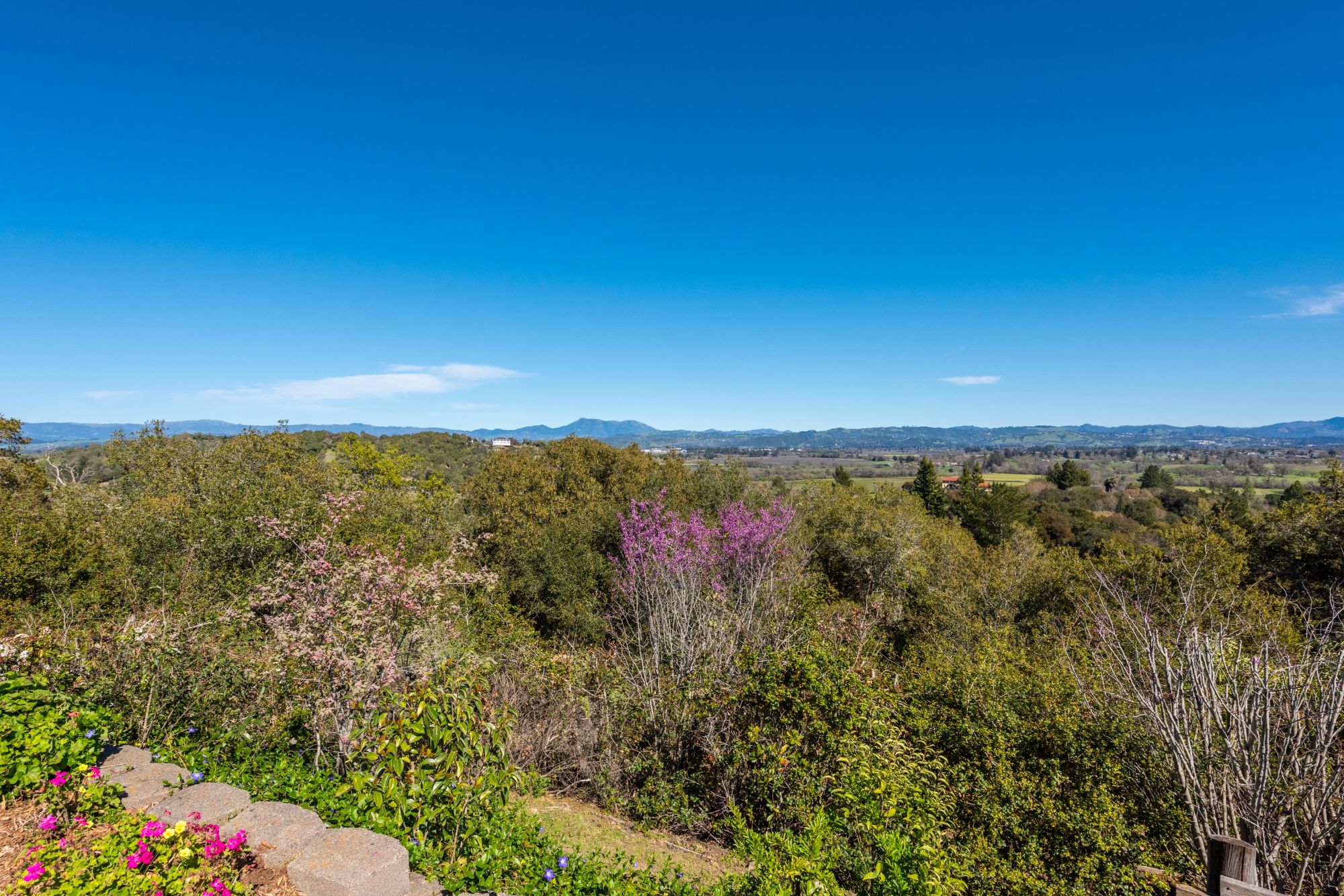 At the end of a private lane in the coveted Vine Hill area of Sebastopol, the home sits atop a 6 acre knoll top parcel with a sweeping easterly outlook and unobstructed vistas from Mendocino County to Marin County. Take in the magnificent grandeur of Mt. St. Helena, Bennett Mountain, Sonoma Mountain and the entirety of the Mayacama range.